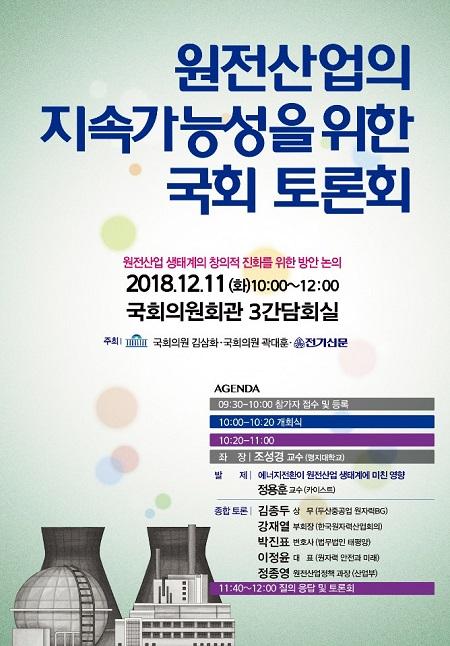 국내 원전의 안정적 운영과 원전 수출 활성화를 위한 원전산업 생태계의 지속가능성을 모색하는 국회 토론회가 열린다.