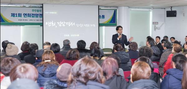 이재현 서구청장은 ‘현장에서 구민과 함께하는 권역별 생생소통의 날’ 운영 네 번째 날로, 지난 7일 검암경서동행정복지센터에서 연희·검암경서동 주민과 함께 소통의 시간을 가졌다.