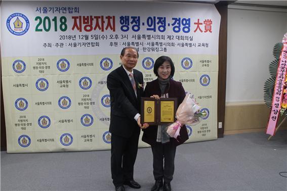지방자치 행정·의정·경영 大賞은 지난 2008년부터 서울기자연합회가 건전한 정치문화를 앞당기고 주민자치 발전에 업적이 뚜렷한 의원을 선정해 수여하는 상이다.