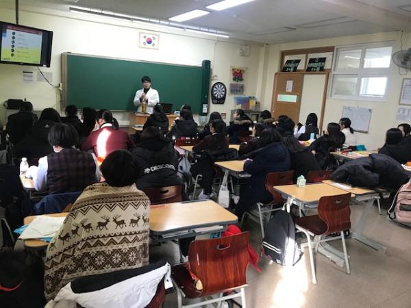 이날 교육은 약사회와 함께 ‘잘 쓰면 약, 잘 못쓰면 독, 약사와 함께 상담하세요’라는 주제로 진행됐다. 전문약사를 초빙해 학생들에게 의약품에 대해 설명하고 유해 약물과 흡연이 인체에 미치는 부정적인 영향에 대해 강의했다. 강연 후에는 학생들이 약물 오남용에 대해 다시 한 번 생각해 볼 수 있도록 직접 참여하는 실습시간도 마련했다.