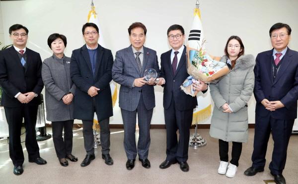 용인시는 10일 시장실에서 단국대 어진우 산학부총장에게 시민 대상 인문학 무료특강을 개설해 독서문화 진흥에 기여한 공로로 감사패를 수여했다고 밝혔다.