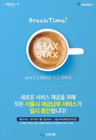 서울시의 모든 납부 서비스가 오는 2019년 1월 1일 영시부터 다음날인 1월 2일 오전9시까지 33시간동안 일시 중단된다.