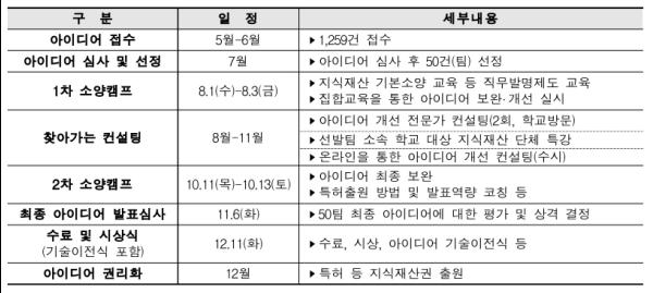 한편, 이번 프로그램에 참여한 50팀은 3차례에 걸친 심사과정을 통해 선발되었으며, 4개월에 걸친 온라인교육, 지식재산 소양캠프, 전문가 컨설팅 등을 통해 아이디어를 구체화하여 특허로 출원했다.