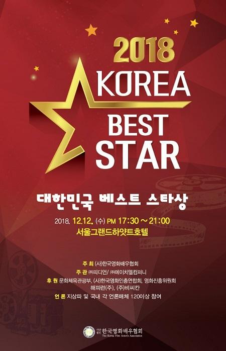 한국영화배우협회에서는 오는 12일 오후 5시 30부터 그랜드 하얏트 서울 그랜드볼룸에서 올 한 해를 총결산하는 ‘2018 대한민국 베스트 스타상 시상식’을 개최한다.