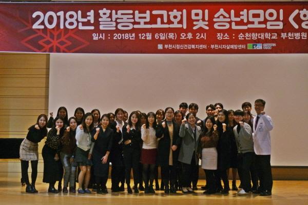 부천시보건소와 부천시정신건강복지센터는 지난 6일 순천향대학교 부천병원 향설대강당에서 2018년 활동보고회 및 송년모임 ‘행복한 동행’을 개최했다. 이는 정신장애인과 가족들을 위로하고 사회복귀에 대한 의지와 자신감을 심어 주기 위한 행사로 만성정신장애인과 가족, 관련기관 관계자 등 230여 명이 참석했다.