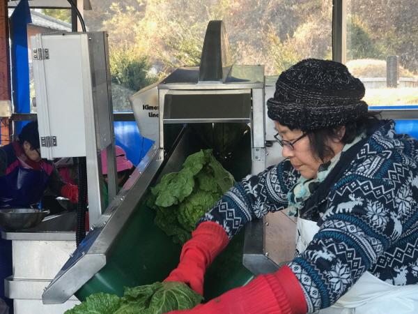 숯골마을은 지난해부터 절임배추를 판매해 소득이 늘어나는 추세이나 고령화에 따른 노동력 부족 등의 이유로 생산량을 늘리지 못하고 있는 실정이었다. 농업기술센터에서는 이러한 애로사항을 극복하고자 농촌공동체 활성화를 위해 추진하는 농촌어르신 복지생활 실천 시범사업을 통해 통배추이절기 등 8종의 기계를 지원하고 남은 배추를 활용해 수제 즉석만두를 만들어 소득을 올릴 수 있도록 만두제조용 기계 3종을 추가로 공급했다.