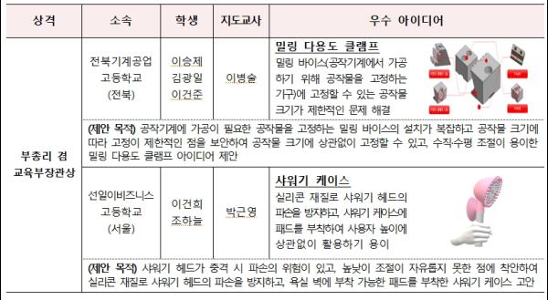 부총리 겸 교육부장관상을 수상한 2개 팀은 아이디어 발굴 및 특허 출원 과정 등 사례발표를 통해 프로그램 이수과정에서 겪은 경험담을 공유했다.
