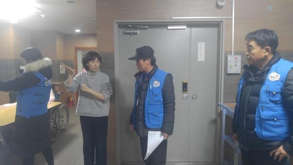 호평동 안전지킴이와 관계 공무원 20여명은 겨울철 화재발생 시 인명피해가 의료시설에서 가장 크게 난다는 사실에 착안하여, 화재발생에 취약한 노인들이 거주하는 기쁨노인전문요양원과 수진사자비원 등 관내 노유자 시설의 안전점검을 실시했다. 먼저 소화전 주변 적치물 제거여부와 비상시 대피로에 대한 안내상태 등을 점검하고, 시설 관계자와 이용객들을 대상으로 화재예방 홍보물을 나눠주는 등 시민참여형 안전점검을 실시했다.