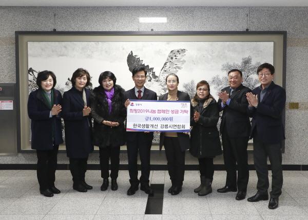 한국생활개선 강릉시연합회는 지난 11일 강원 사회복지공동모금회를 통해 희망2019 나눔 캠페인 성금 100만원을 김한근 강릉시장에게 기탁했다.