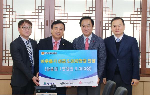 정장선 평택시장은 “어려운 시기임에도 매년 이렇게 어려운 이웃을 위해 성금을 기탁해 주시는 평택산업단지관리공단과 덕일산업에 깊은 감사를 드리며, 정성된 성금은 저소득 위기가정이 따뜻한 겨울을 보내는데 보탬이 되도록 소중하게 전달하겠다.”고 밝혔다.