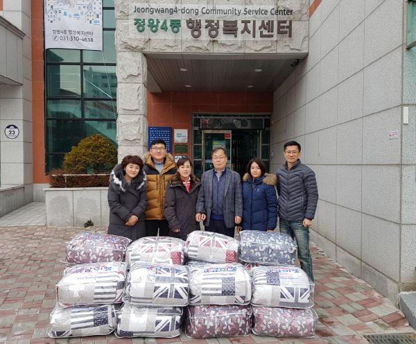 시흥시 정왕4동 주민자치위원회는 지난 11일 이웃과 따뜻한 연말을 함께 하고자 극세사 이불 20개를 정왕4동 행정복지센터에 전달했다.