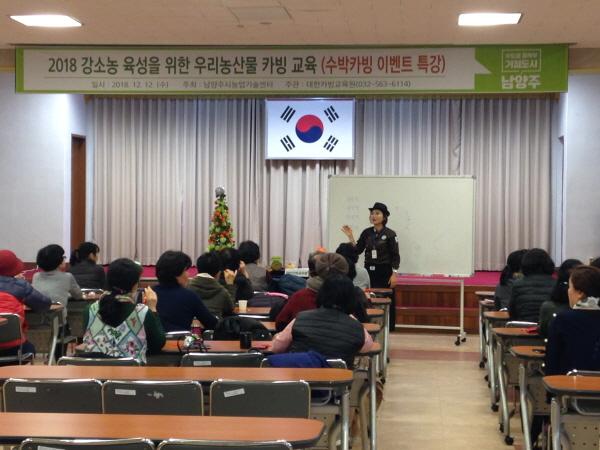 남양주시는 지난 12일 농업기술센터 3층 강당에서 창의적 농업경영 인재양성을 위해 체험농장 및 강소농 농가 40명을 대상으로"우리 농산물을 이용한 카빙 이론 및 실습교육"을 실시했다.