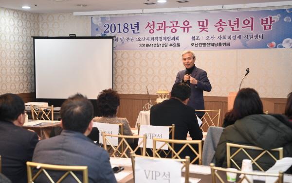 오산사회적경제협의회는 지난 12일 오산컨벤션 웨딩홀에서 곽상욱 오산시장과 장인수 오산시의회 의장, 오산신협 임완식 이사장, 오산시사회적경제협의회 이규희 회장을 비롯한 회원사 등 지역인사와 사회적경제 임직원들이 참석한 가운데 송년의 밤을 개최해 올 한 해를 마무리하고 2019년 새해의 새로운 도약을 다짐했다.