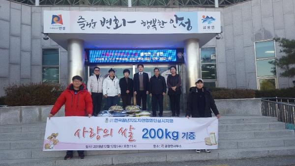 사)한국청년지도자연합회 안성시지회에서는 지난 1일 한청 이·취임식에서 쌀 화환을 기부 받아 금광면 관내 어려운 이웃들을 위해 쌀 200kg을 기증했다