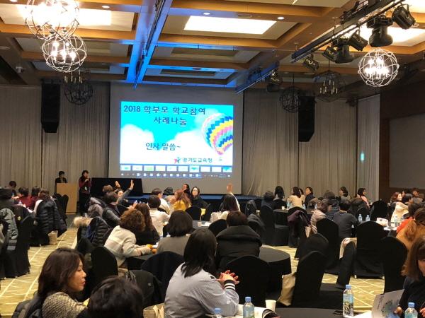경기도교육청은 지난 13일부터 14일까지 1박2일 동안 경기도 광주 서브원에서 ‘2018 학부모 학교 참여 사례 나눔 워크숍’을 개최했다. 이번 워크숍은 학부모의 학교 참여 확대를 위해 다양한 사례를 공유함으로써 학부모들이 학교운영의 주체로서 능동적으로 참여하기 위해 마련하였으며, 학부모회 임원 및 희망 학부모와 업무담당자 200여 명이 참석했다.