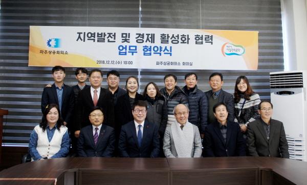 파주시시설관리공단과 파주상공회의소는 파주시 지역발전 및 경제 활성화를 위해 상호 협력하기로 하고, 공단 이사장 손혁재 및 파주상공회의소 회장 권인욱 등 16명이 참석한 가운데 파주시상공회의소 회의실에서 지난 12일 업무협약식을 가졌다.