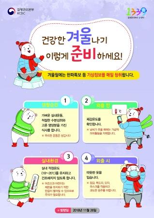 장동구 건강안전과장은 “한랭질환은 심각한 인명피해로 이어질 수 있지만 건강수칙을 잘 지키는 것으로 충분히 예방이 가능하므로 기상예보를 확인하고 한파대비 건강수칙을 준수할 것”을 당부했다.