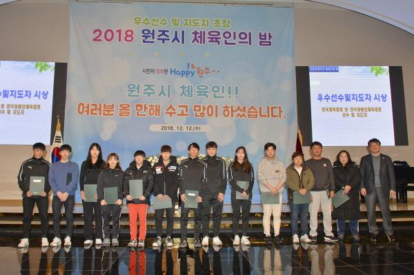 원주시와 원주시체육회는 지난 12일 원주 아모르컨벤션웨딩홀에서 체육인들의 한해를 마무리하는‘2018 원주시 체육인의 밤’행사를 성대하게 개최했다.