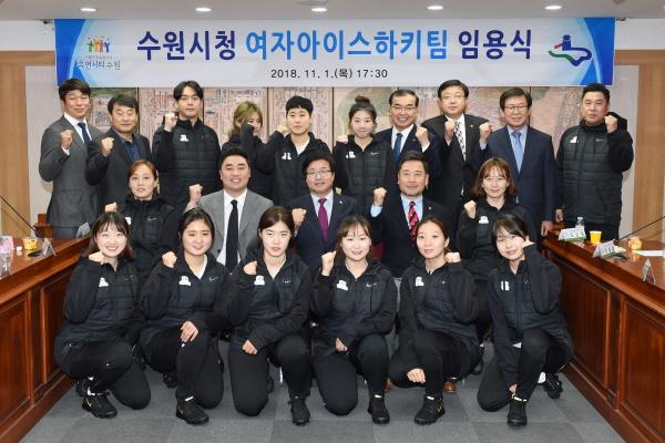 수원시는 지난 11월 1일 시청 상황실에서 여자아이스하키팀 임용장 수여식을 열고, 코치 2명과 선수 11명에게 임용장을 수여한 바 있다. 이에 앞서 9월 11일에는 여자아이스하키팀 초대 감독으로 김도윤 여자아이스하키 국가대표 코치를 선임했다.