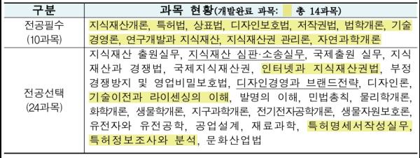 국제지식재산연수원에서 무료로 운영하는 ‘지식재산학’ 전공 과정은 2015년 충남대를 시작으로 현재 전북대, 제주대 총 11개 대학에서 운영 중이며 최근 지식재산의 중요성이 부각되면서 학생들 사이에서 인기를 얻고 있다.
