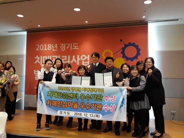 경기도에서는 치매관리사업을 추진하면서, 치매안심센터 및 치매안심마을을 우수하게 수행한 기관에 표창을 수여하고 있으며 양평군은 2016년에는 경기도 우수기관 표창, 2017년에는 경기도 최우수기관 표창, 2018년에는 치매안심센터 및 치매안심마을 2개 분야에게 2관왕을 수상하면서 3년 연속 경기도 우수기관 표창을 받게 됐다.