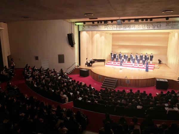 천상의?하모니라는?극찬을?받고?있는?세계?유일의?아카펠라?소년합창단인 파리나무십자가?소년합창단이?지난 14일 평택시남부문예회관에서 성황리에 열려 공연장을 찾은 시민들에게 큰 감동을 전했다.?
