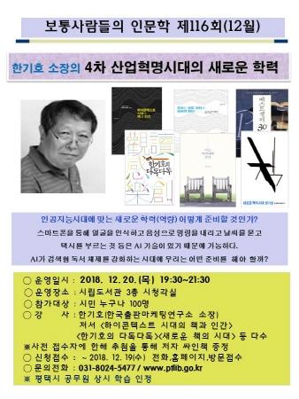평택시립도서관은 오는 20일 한기호 소장을 초청해 12월 보통사람들의 인문학 강좌를 운영한다.