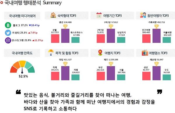한국관광공사, 최근 3년간 소셜 빅데이터 내 국내여행 관련 데이터 약 264만건 분석
