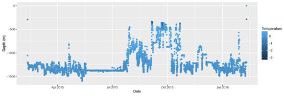 이후 위성전자표지 분석을 통해 확인한 결과, 남극이빨고기는 연중 수심 1000m 이상의 깊은 곳에서 서식하다가 9월에만 400m가량 얕은 수심으로 이동하는 것으로 밝혀졌다.