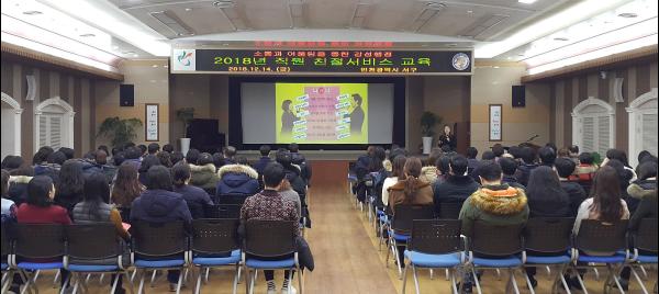 본청과 사업소, 동 행정복지센터 창구 및 인·허가 등 주요 민원 업무담당 공무원과 비정규직, 사회복무요원 등을 비롯한 전 직원을 대상으로 실시된 이번 교육은 ‘소통과 어울림을 통한 감성행정’이라는 주제로 박원영 WYP교육컨설팅 대표의 특강으로 진행됐다.