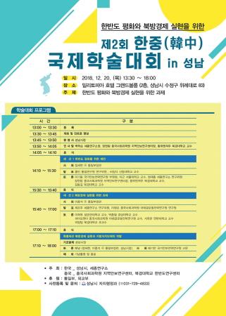성남시와 세종연구소, 중국사회과학원 지역안보연구센터, 북경대학교 한반도연구센터가 공동 주최하는 이날 행사는 한반도 평화와 북방경제 실현 과제 모색을 위해 마련된다. 국내학자 10명과 중국학자 8명 등 모두 18명의 한중 전문가가 참여해 3가지 세션의 학술대회가 진행된다.
