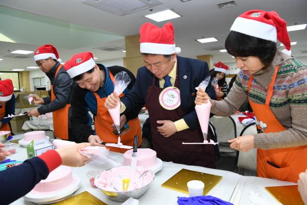 ‘케이크에 사랑을 담아’는 구리시종합자원봉사센터와 함께 올해 처음으로 진행한 봉사활동으로 구리시 공직자 20명과 시민 가족 봉사자 80명 등 100여명이 참여한 가운데 진행됐다. 참가자들은 정성껏 만든 케이크와 생필품을 한부모가족 13세대와 독거어르신 37세대를 직접 방문하여 전달하는 등 성탄절을 앞두고 뜻깊은 시간을 가졌다.