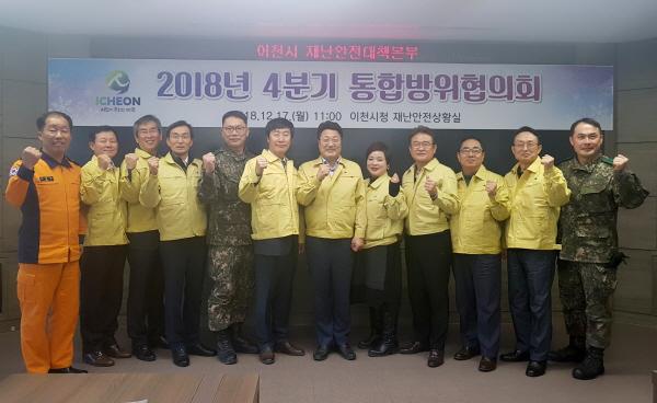 이천시는 지난 17일 시청 8층 재난종합상황실에서 엄태준 이천시장과 군부대, 경찰서, 소방서, 교육계, 안보단체 등 통합방위 관련 위원 20여 명이 참석한 가운데 ‘2018년 4분기 이천시 통합방위협의회’를 개최했다. 이날 회의는 이천시 통합방위협의회 의장인 엄태준 시장이 주재했으며, 2018년도 통합방위 활동사항 및 민관군 상생협력 사업추진 등 성과를 보고받았다.