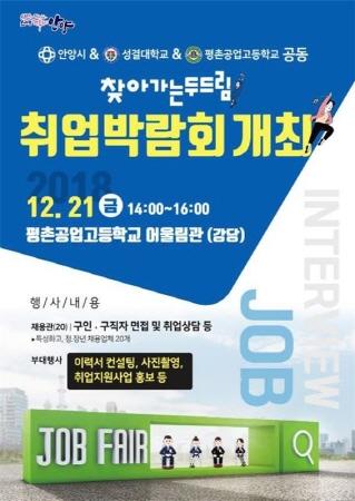 안양시는 오는 21일 평촌공업고등학교 어울림관에서 성결대학교 · 평촌공업고등학교와 공동으로 찾아가는 두드림 취업박람회를 개최한다.