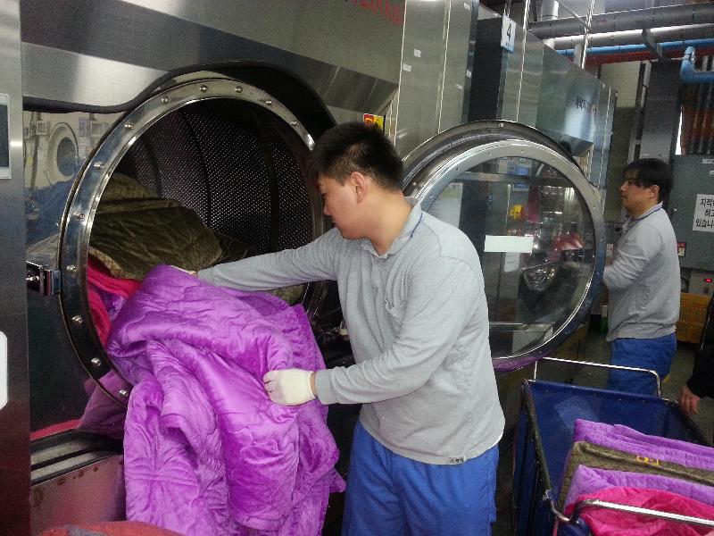 1월 7일(목) 포항시자원봉사센터(소장 권경옥)에서는 지난 1월 1일 제18회 호미곶 한민족 해맞이축전의 백미로 진행되는 1만명 떡국나눔 활동을 위해 현장에서 자원봉사자의 편의를 위해 사용한 이불 130장을 포스코휴먼스에서 무료이불 세탁 서비스를 실시하였다.포스코휴먼스 위드플러스부문(사장 강대희)은 전 직원의 과반수 이상이 장애인직원으로 구성된 국내 1호 대기업 자회사형 장애인표준사업장으로 사무지원서비스, 클리닝서비스, IT통신서비스 업무를 수행하고 있다. 오늘 포스코휴먼스는 사회공헌활동의 일환으로 제18회 호미곶 한민족 해맞이축전을 방문한 관광객들을 대상으로 진행하는 1만명 떡국나눔에 참여하는 자원봉사자들이 내년에도 편안한 휴식 갖고 활발한 자원봉사활동을 펼칠 수 있도록 기업의 특성을 살려 이불세탁으로 사회공헌활동에 참여하였다.