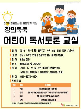 고양시 한뫼도서관, 초등학생 위한 ‘2019 겨울방학 특강’ 운영