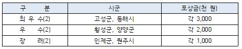 도는 19일 2018년 강원도 지방규제개혁 평가 추진실적에 대한 18개 시·군 평가결과, 최우수 기관으로 고성군, 동해시, 우수기관으로 횡성군, 인제군, 장려기관으로 양양군, 원주시를 각각 선정하고 시상식을 개최했다.