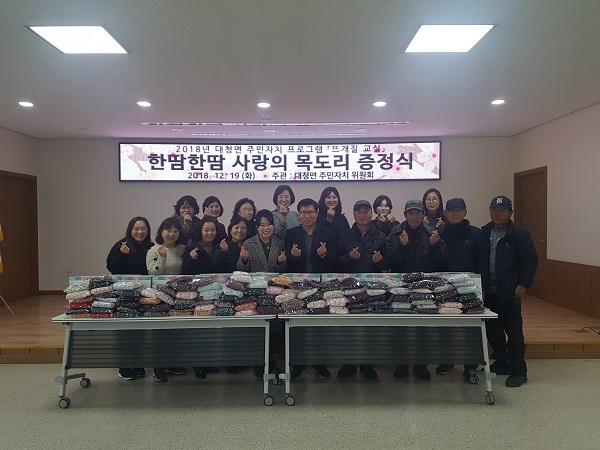 대청면사무소에서는 지난 18일 연말연시를 맞아 그동안 대청면 주민자치프로그램 뜨개질교실에서 만든 "한땀한땀 사랑의 목도리"증정식을 가졌다.