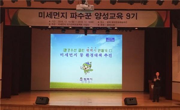 평택시는 미세먼지에 대한 시민 관심 증대 및 미세먼지 파수꾼 양석교육 확대 실시 요청에 따라 지난 3월에 실시 한 1차 교육에 이어 금회 12월 10일부터 12월 18일까지 주2회 2차 교육을 북부문화예술회관 소공연장에서 시민 80여명을 대상으로 ‘미세먼지 파수꾼 양성교육’을 실시했다.
