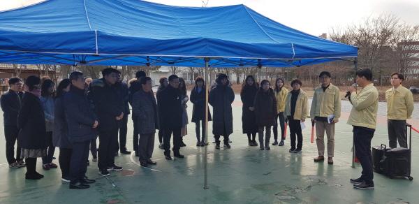 의정부시 송산2동 행정복지센터는 겨울철 소방안전관리대책의 일환으로, 지난 18일 행정복지센터 직원 및 이용 주민 50여 명과 의정부 소방서가 합동소방훈련을 실시했다.