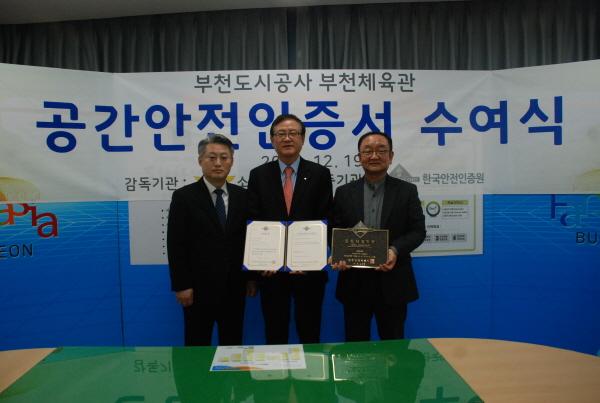 부천도시공사 부천체육관이 19일 한국안전인증원으로부터 공간안전인증을 획득했다.