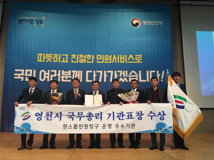 영천시(시장 최기문)는 19일 행정안전부 주관으로 부산항국제전시컨벤션센터에서 개최된 ‘2018년 민원공무원의 날’ 행사에서 민원행정발전 (원스톱민원창구 운영) 우수기관으로 선정되어 국무총리 표창을 수상하는 영예를 안았다.
