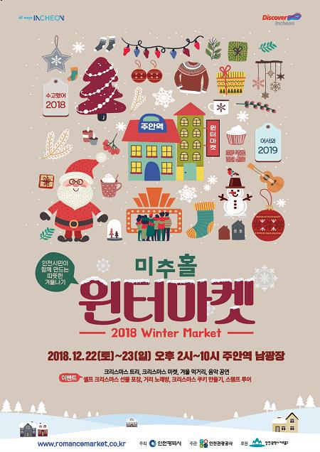 인천시와 인천관광공사는 오는 22일부터 23일까지 주안역 남광장 일대에서 도심속 겨울의 낭만과 즐거움을 느낄 수 있는"윈터마켓"을 개최한다고 알렸다.
