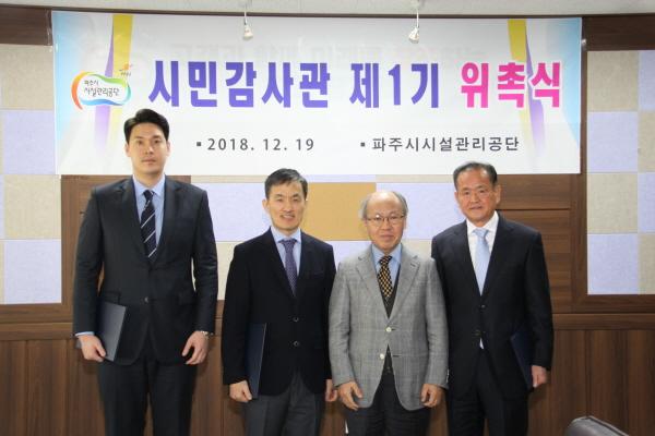 파주시시설관리공단은 사업운영의 투명성과 공정성을 높이기 위해 일반 시민이 직접 행정에 참여하는 시민감사관 제도를 도입하고 지난 19일 시민감사관 3명을 모시고 위촉장을 수여했다.