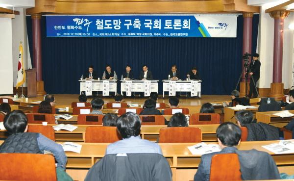 이날 토론회에는 파주시민들과 최종환 파주시장을 비롯한 윤후덕·박정 국회의원, 오재학 한국교통연구원장, 이윤상 국토교통부 철도정책과장, 강승필·김시곤 과학기술대학교 철도전문대학원 교수, 김종학 국토연구원 인프라정책연구센터장, 지용태 한국철도공사 남북대륙사업실장 등 철도관련 전문가 100여명이 참석해 열띤 분위기 속에서 진행됐다.