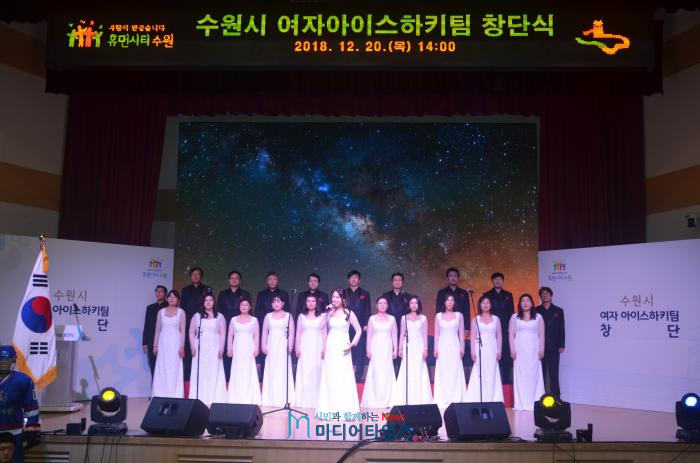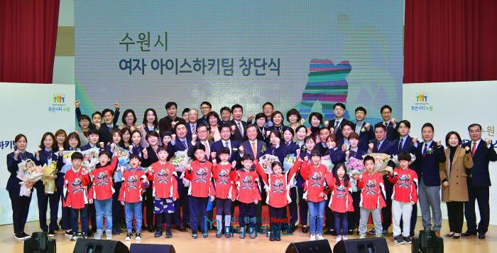 국내 최초의 여자아이스하키 실업팀인 ‘수원시청 여자아이스하키팀’이 20일 시청 대강당에서 창단식을 열고, 공식적으로 출범했다.