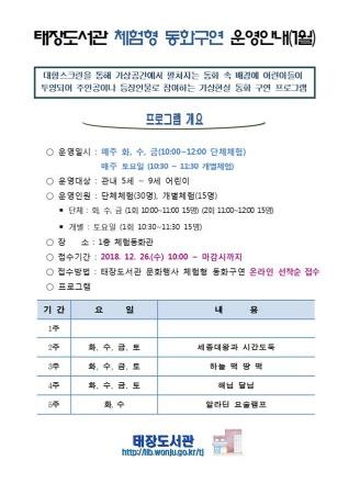 1월 체험 동화는 "세종대왕과 시간도둑", "하늘 떡 땅 떡","해님 달님", "알라딘 요술램프"로 아이들에게 친숙한 동화가 준비돼 있다.