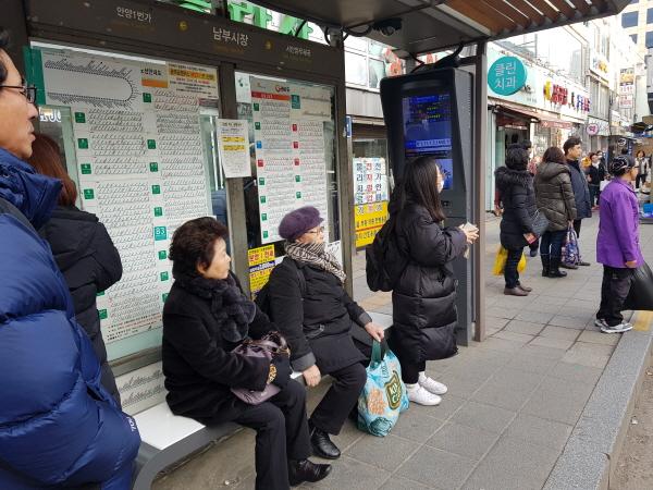 버스를 기다리는 승객들이 한 겨울 추위걱정 할 필요가 없게 됐다. 안양시가 버스정류장에 온열의자를 설치해 버스이용객들이 반색하고 있다.