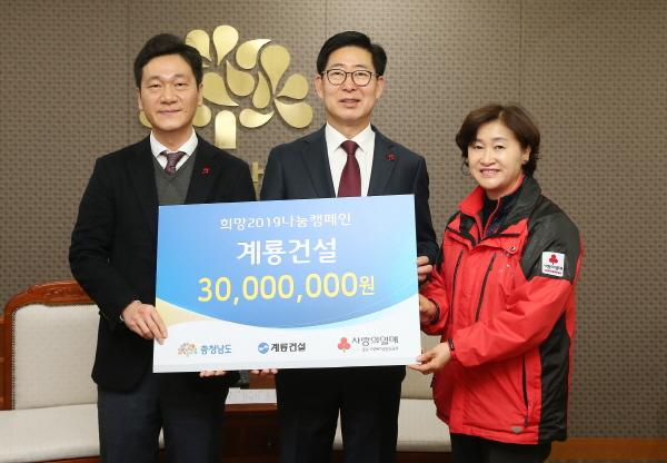 계룡건설이 21일 충남도청을 방문해 어려운 이웃을 위한 성금 3000만원을 쾌척했다.