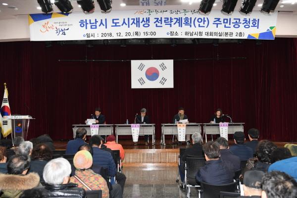 공청회는 하남시 권역별 쇠퇴진단 및 활성화지역 우선순위 선정에 대한 도시재생 전략계획과 범죄예방 환경디자인사업 설명, 관계전문가 토론시간 및 시민들의 의견청취 순으로 진행됐다. 주요의견으로는 신도심과 원도심의 상생 방안을 고민하여 주민과 함께 도시재생이 될 수 있도록 노력을 해 달라는 의견과 주차장 부족, 골목길 개선, 지중화사업, 노후 상수도관 교체 등 현재 당면해 있는 원도심의 문제점과 불편사항에 대해 같이 공유하고 이해하는 시간을 가졌다.